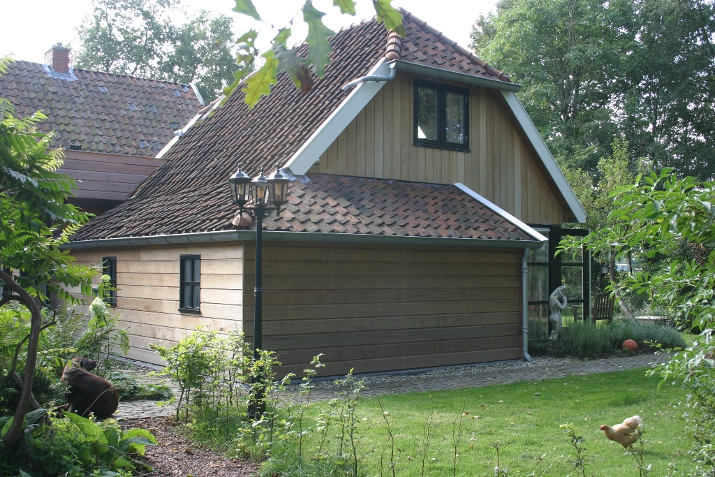 eiken bijgebouw hier als houten aanbouw. In het gebouw fitness sauna wellness en slaapruimte