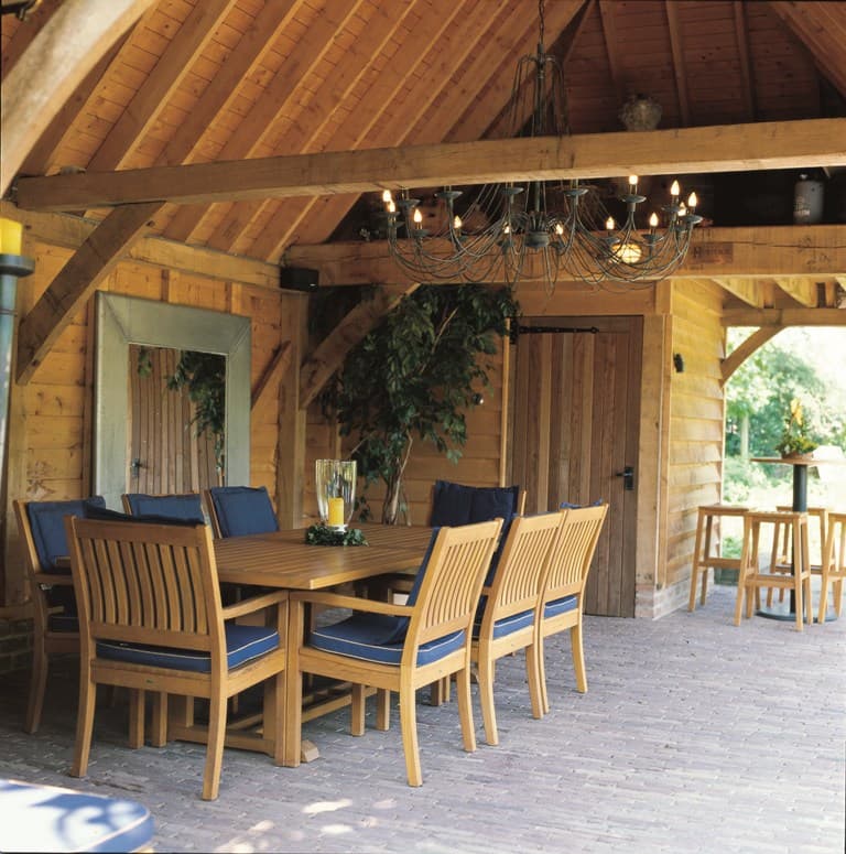 Eigen bijgebouw, vrijstaand met buitenkeuken en berging bij zwemvijver in tuin van een monument