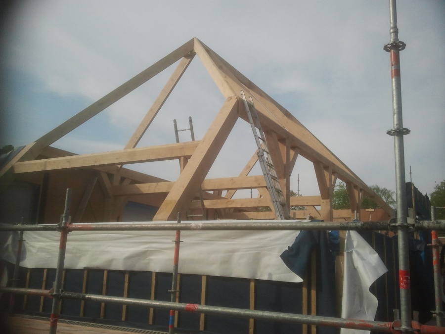Voor een villa in soest is het eiken frame gemonteerd, in overleg met aannemer en architect is het frame volledig op maat ontwikkeld.