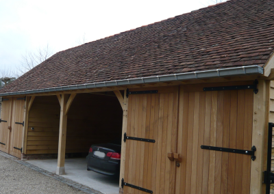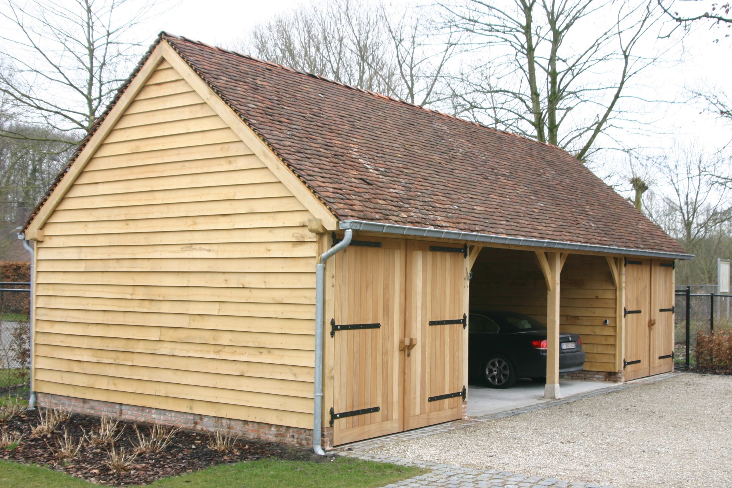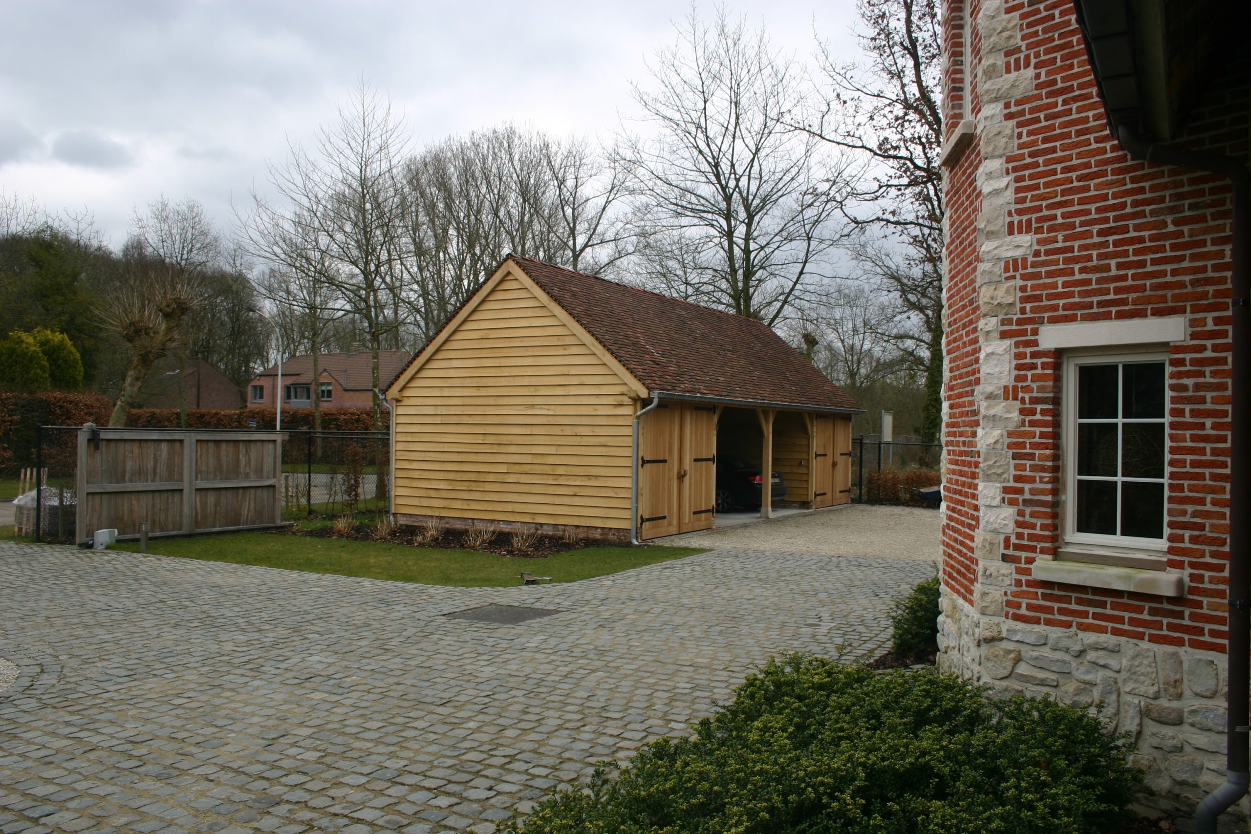 Het gebouw met duurzaam eiken frame is voorzien van dubbele garage en een dubbele carport.