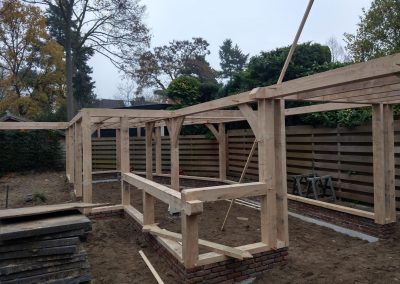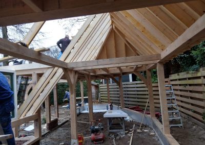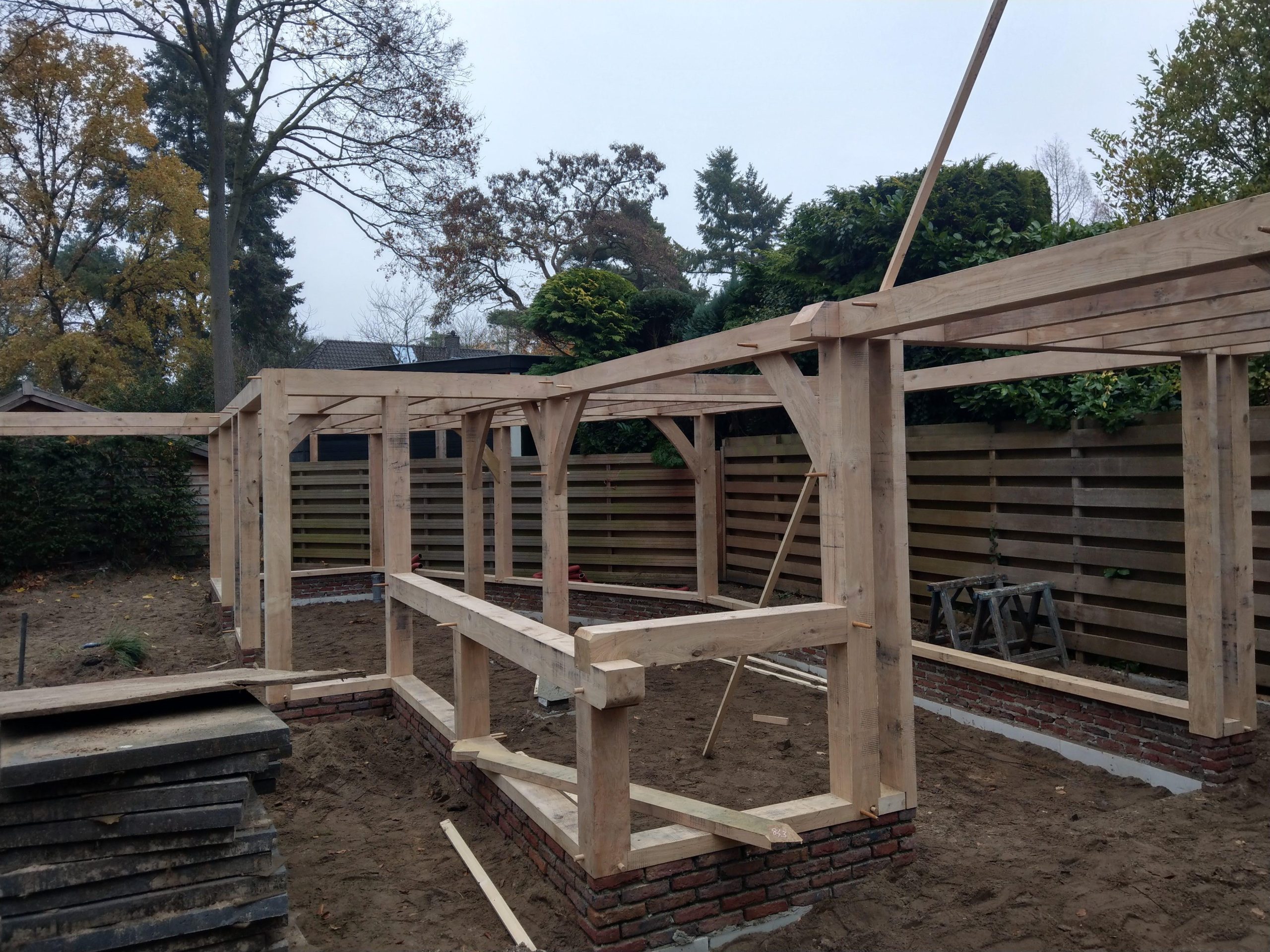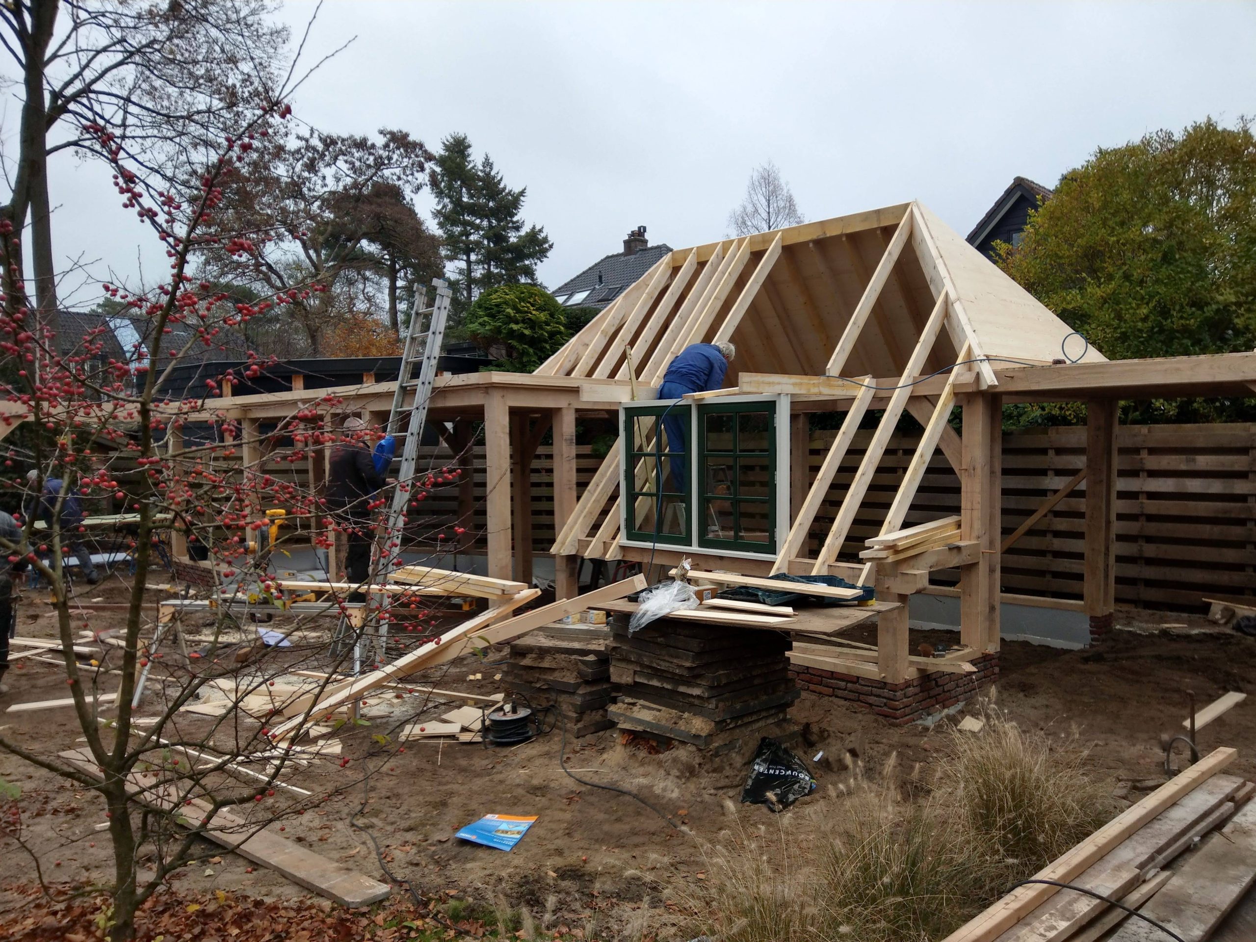 Werk in uitvoering in volle gang, het eiken gastenverblijf, met atelier en hobbyruimte moet voor de kerst klaar in verband met familie bezoek.