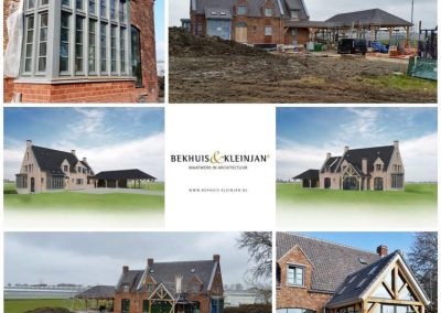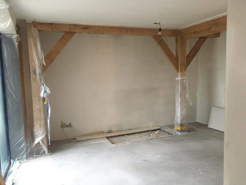 Deze nieuwbouw villa is van binnen voorzien van eiken frames die de woning een traditioneel en robuust uiterljk geven. Zowel op de begane grond als op de verdiepingen lopen de eiken frames door.