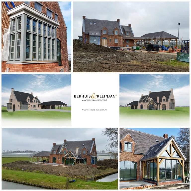 Aan de achterzijde is een volledig eiken tuinkamer gebouwd met de robuste eiken onderdelen. De stalen kozijnen zijn waterdicht in de eikenconstructie opgenomen.