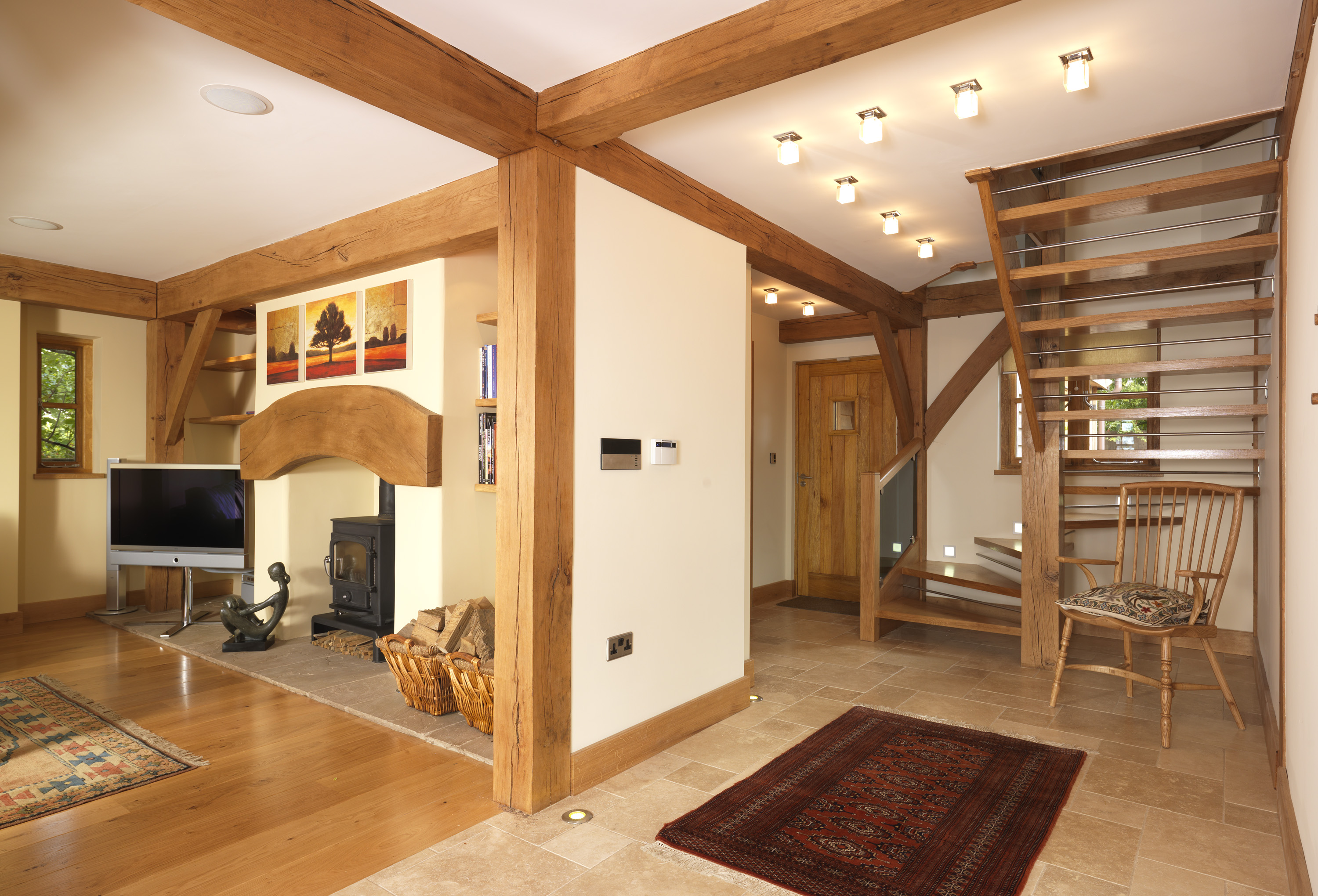 Het is niet alleen de sfeer maar ook de atmosfeer die belangrijk is. De woning is voorzien van dampopen, luchtdichte isolatiepanelen die gevuld zijn met natuurlijke cellulose isolatie. Het uitgekiende ventilatie- verwarmings- en koelingssysteem zorgt voor een aangenaam binnenklimaat. Mocht u binnenkort in de buurt zijn dan bent u welkom bij de fabriek en het Engelse Showhuis. Dichterbij kunt u binnenkort in de Belgiche ardennen terecht voor ons showhuis, kijk hiervoor verder op onze website. Beide woningen zijn energieneutraal. Hierbij een link naar
